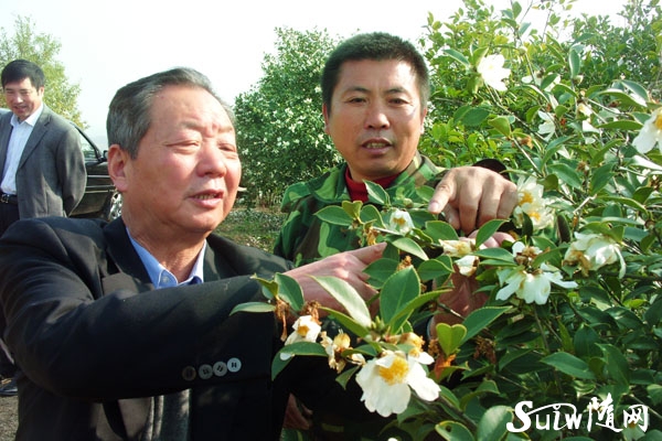 ▲在随县新街镇河源店村指导老油茶园科学改造。