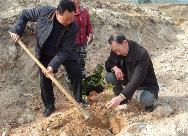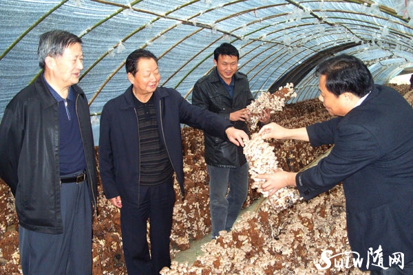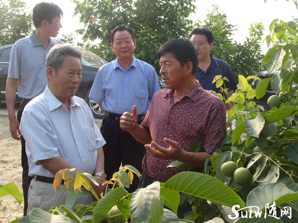 ▲陪同省老促会会长吴华品到曾都区何店镇指导核桃田管。