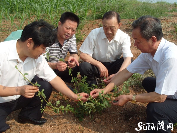 ▲在随县新街镇王寺村指导金银花种植和田管。