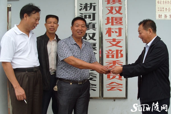 ▲把筹措的1万元帮扶款送到随州经济开发区淅河镇府君山村。