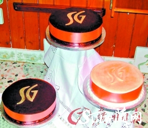 图为新人姑姑制作的婚礼蛋糕。