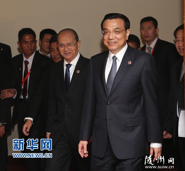 10月9日,国务院总理李克强在文莱斯里巴加湾市会见缅甸总统吴登盛。 新华社记者刘卫兵摄