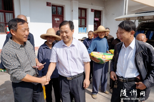 九九重阳节,浓浓敬老情。10月13日,随州经济开发区淅河镇星光印务公司经理李昌发带着2000元慰问金和大米、食用油看望该镇光华福利院老人。 (记者 李文军 通讯员 黄勤书 摄)