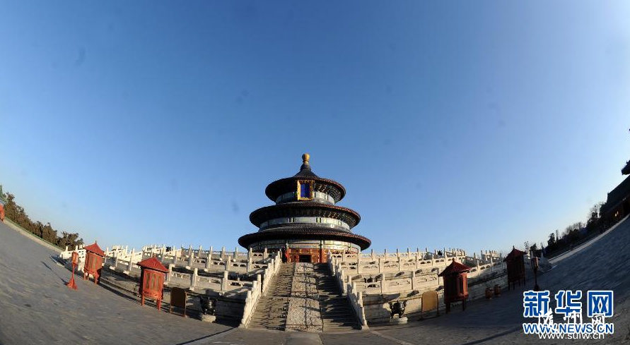 2014年2月27日,在蓝天映衬下的北京天坛公园祈年殿。在空气重污染预警持续生效156个小时后,北京迎来久违的蓝天。近三年,北京遭遇过数次较严重的雾霾天气,清风送走雾霾,数次离别,愿再不相见。 新华社记者 公磊 摄