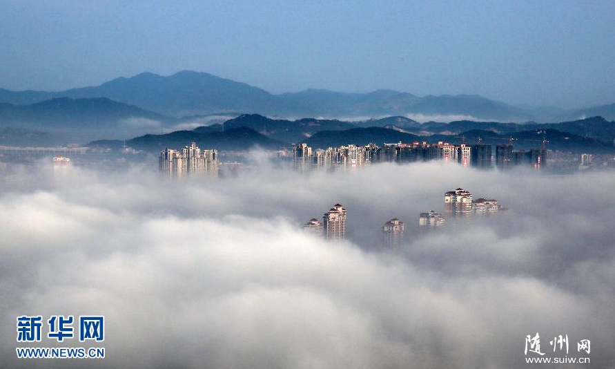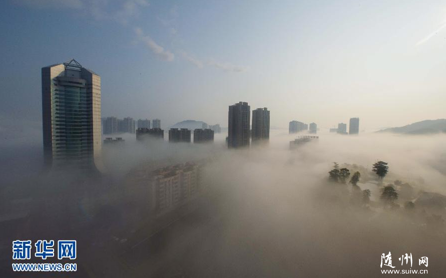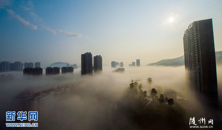 3月13日清晨,福建泉州市区的高楼被笼罩在雾气中。当日,福建泉州市出现“平流雾”景观,云山雾海,宛若仙境。 新华社发(张九强 摄)