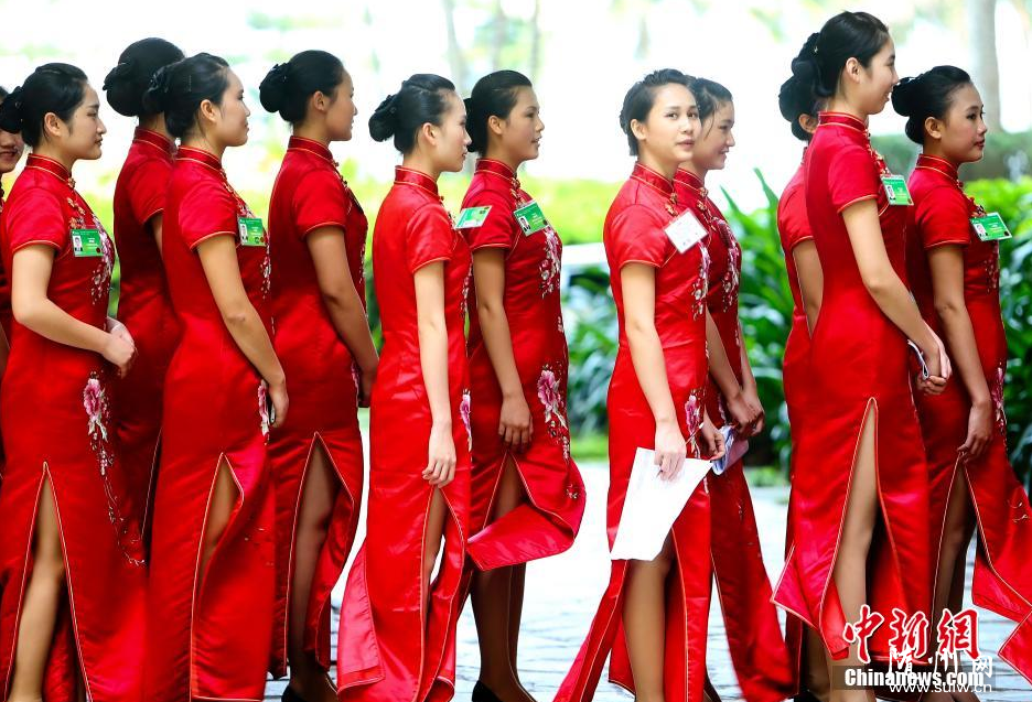 4月7日,在海南博鳌论坛永久会址负责接待工作的礼仪小姐们在现场了解引导路线。博鳌亚洲论坛2014年年会将于4月8日至11日在海南博鳌召开,主题为“亚洲新未来:寻找和释放增长新动力”,论坛将围绕主题进行近60场正式讨论。中新社发 陆欣 摄
