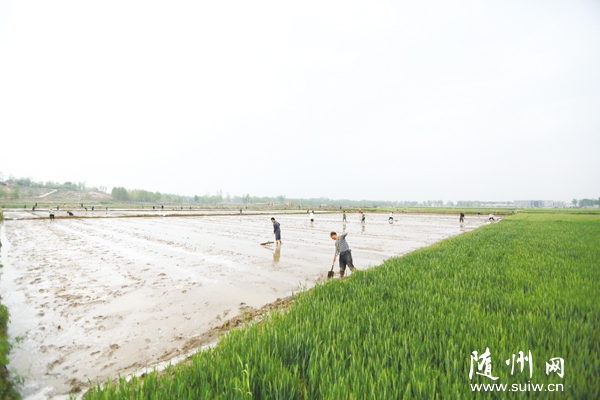 随县唐县镇肖畈村党支部、村委会组织村民实行大田集中育秧