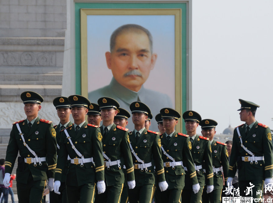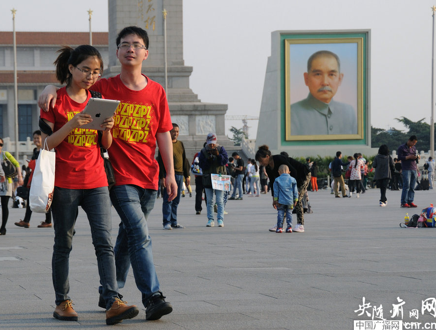 2014年4月27日,北京,孙中山先生的巨幅画像亮相天安门广场,迎接“五一”国际劳动节的到来。