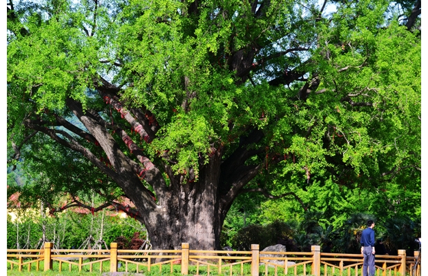 留念于千年古银杏树旁,那一树的葱茏,在蓝天下,在微风中,尽情的显现着生命的力量。只因春来到,好一个不老的传说!不远处,白的、黄的、蓝的小花儿,这一团,那一簇,灿若蒸霞、艳盖桃李,好像都争先恐后的开放着,探寻季节的美景。
