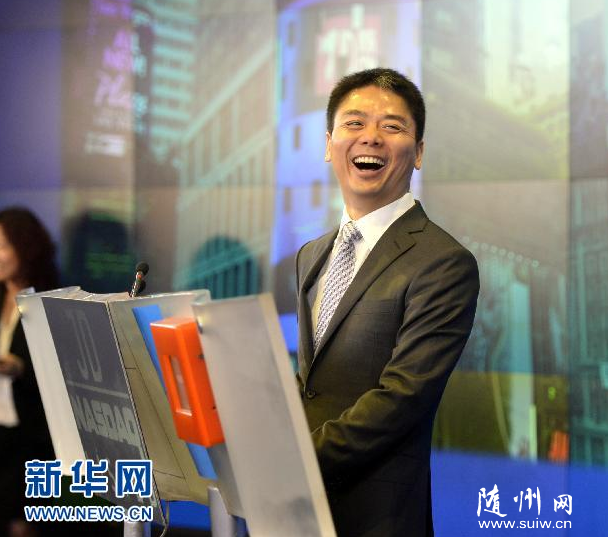 5月22日,京东集团创始人兼首席执行官刘强东在美国纽约纳斯达克交易所参加上市发布活动。当天,中国最大的自营式电商企业——京东集团在美国纳斯达克证券交易所挂牌交易,股票代码为“JD”。京东本次公开发行共募集17.8亿美元,是至今为止中国企业在美融资规模最大的首次公开募股。新华社记者王雷摄