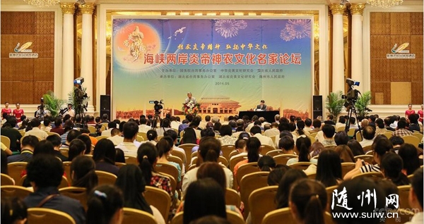 5月24日下午,海峡两岸炎帝神农文化名家论坛于湖北随州隆重举行。该论坛是甲午年世界华人炎帝故里寻根节的重要活动之一,主题是“传承炎帝精神,弘扬中华文化”。图为文化论坛现场。