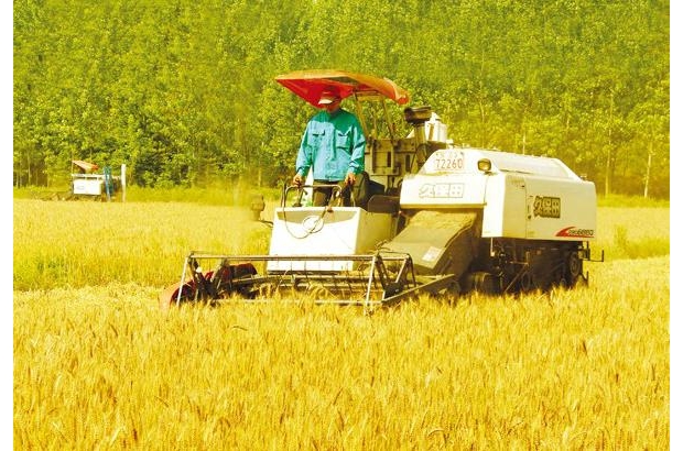 洛阳镇农民日前利用晴好天气收割成熟小麦