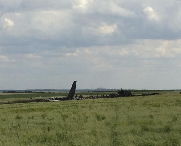 这是6月14日在乌克兰东部卢甘斯克机场附近拍摄的被击落的伊尔-76运输机残骸。乌克兰总检察院网站14日发布消息说,在卢甘斯克机场上空被击落的乌克兰梅利托波尔航空运输旅的军用运输机上的49人已全部丧生。目前乌克兰南部地区检察院已就此展开调查。新华社/美联