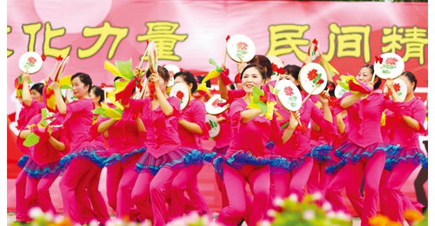 6月13日,曾都区第二届广场舞在神农公园举行。中老年人的优美舞姿和昂扬的精气神赢得了观众的阵阵喝彩。 (记者 徐 斌摄)