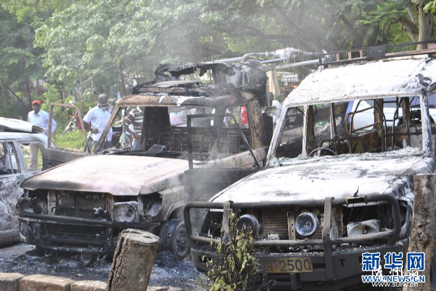 6月16日,在肯尼亚沿海拉穆地区姆佩卡托尼镇,政府车辆在袭击中被烧毁。据肯尼亚红十字会16日消息,肯尼亚沿海拉穆地区姆佩卡托尼镇15日晚发生武装袭击,造成至少48人死亡。 新华社发