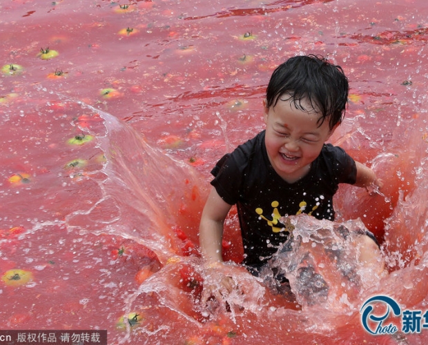 韩国举办西红柿庆典 儿童畅游“红色海洋”
