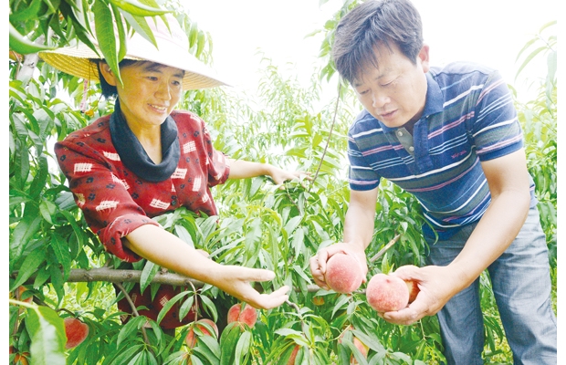 淅河镇兴建村村民辛忠武流转该村70多亩荒坡地,从山东、武汉等地引进30余个优质果树品种进行试种,择优发展,出产的水果成为水果市场和超市的抢手货。(本报记者 李文军 通讯员 黄勤书摄)