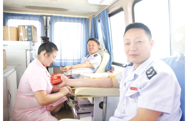 七月十五日,随县地税局响应无偿献血的号召,积极组织干部职工参加无偿献血活动。(黄练 陈振摄)