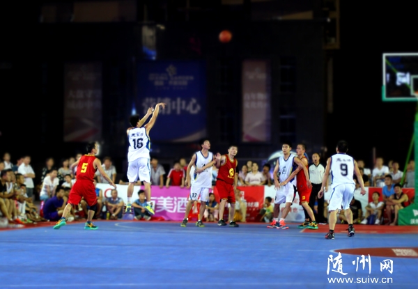 2014随州市男子篮球联赛于上周日开幕,14日晚卫冕冠军“三得利”队迎来首场比赛,可惜在最后一分钟被对手逆转绝杀。(本报记者 徐斌 摄)