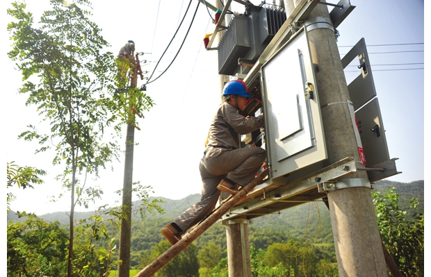 7月30日,在风貌古朴的桃源村,广水市供电公司新架10千伏广孝Ⅰ 回易家湾支线桃源分支线,为新增两台200千伏安配变搭火。为助力桃源村经济提速,更好的服务村民用电,自今年7月15日起,该公司一线员工顶着高温酷暑,克服时间紧、人员少、任务重等困难,圆满完成桃源村47基10千伏线路改造,21基新建线路。 (史铭茗 摄)