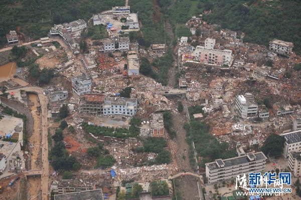 这是8月4日航拍的震中鲁甸县龙头山镇。 新华社记者薛玉斌摄