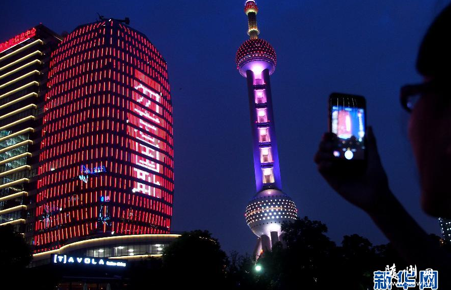 8月12日,黄浦江畔的中国金融信息中心玻璃幕墙上闪现“勿忘国耻”字样。当日,由中国金融信息中心与上海市国防教育基金会合作推出国防教育主题公益宣传活动,一些国防宣传标语依次闪现在中国金融信息中心的主体建筑上,以此纪念“八·一三”淞沪会战77周年。新华社记者 陈飞 摄