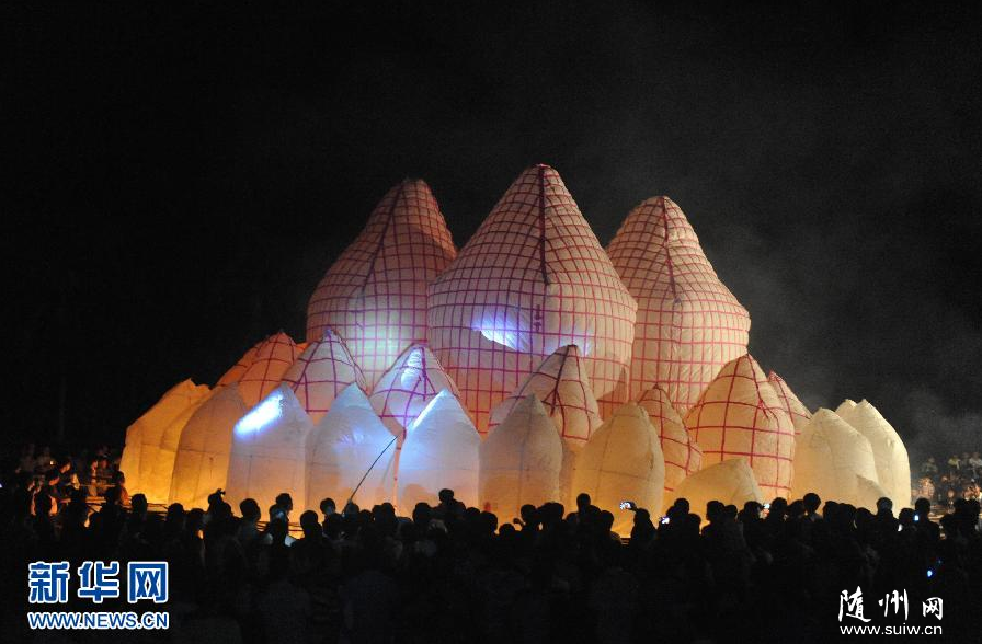 8月18日,海南省琼海市万泉镇红岭村村民放飞的巨型天灯徐徐升空。当日凌晨,海南省琼海市万泉镇红岭村村民成功放飞一个直径逾40米的捆绑式巨型天灯。这个巨型天灯由62个直径2至4米的小天灯组成,60多名年轻人耗时一周制作完成。该天灯放飞后升至近50米的高空,随风飘移一段时间后烧毁,整个过程持续了约5分钟。据介绍,放天灯是当地群众中元节驱鬼祈福的传统习俗,近年来逐渐演变成一种娱乐活动。新华社发(蒙钟德 摄)
