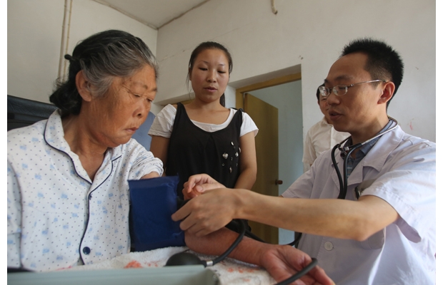 随州市中心医院的医疗专家日前到随县边远乡镇,义务为群众进行健康检查。 (记者 孙洪涛摄)