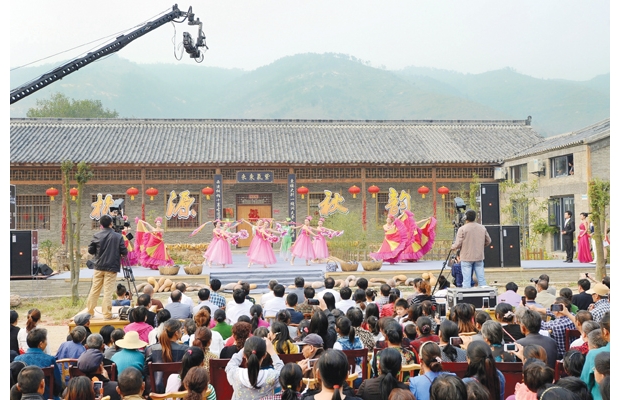 10月12日,市广电局和广水市广电局组织近百名新闻工作者来到广水市武胜关镇桃源村,联合举办“桃源秋韵——随州广电媒体走进绿色幸福村”送文化下乡专场文艺演出。图为直播现场。 (记者 李文军摄)