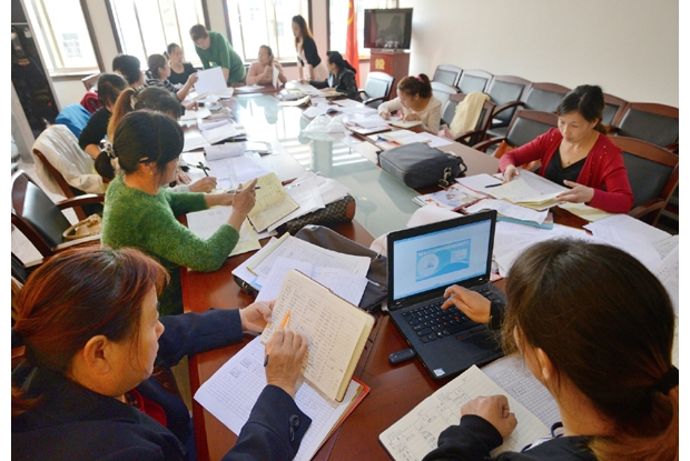 针对全镇流入流出人口增多的实情,10月11日,随县吴山镇组织全镇19名计生专干对全镇出生人口进行集中清理和核实。 (记者 李文军 摄)