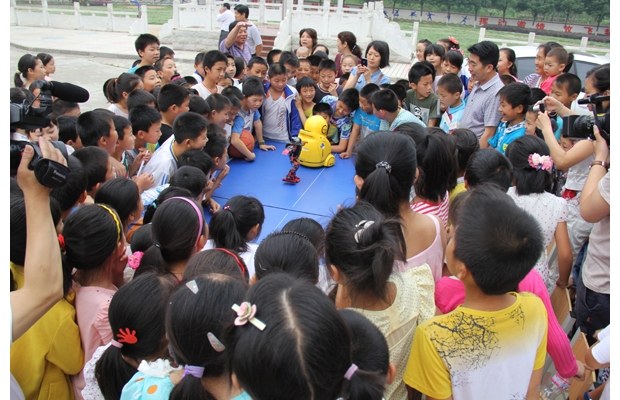 曾都区科技馆经常深入学校开展科普活动,普及科学知识,传播科学思想,推动了青少年科学素质的不断提高。图为科技馆到洛阳镇中心学校向学生展示机器人表演。 (冯先长摄)