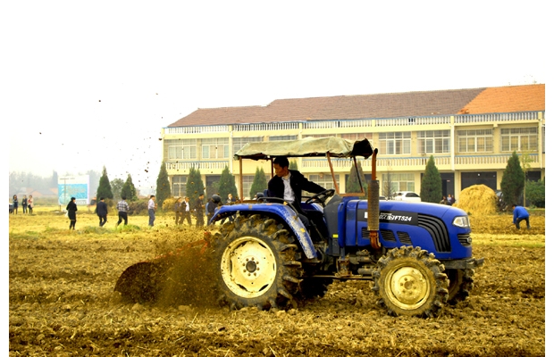 10月16日,曾都区举行秋冬播生产现场会,确定今年落实秋冬播小麦28万亩,小麦机械条播面积20%以上,图为曾都区万店镇黄家畈村的村民在条播小麦。 (记者 徐斌摄)