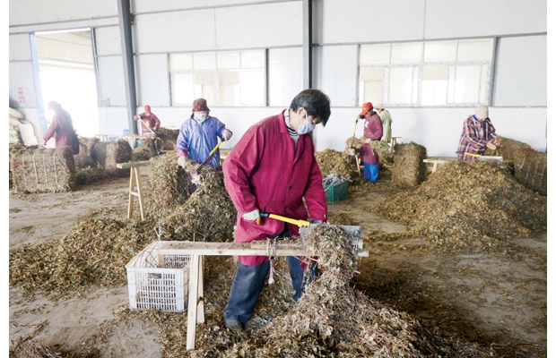 10月26日,随县高城镇鸿发土特产公司工人正在切割打包鱼腥草。截至10月底,该公司今年已向韩国出口近千吨中药材,创汇过1000万美元。 (记者 李文军 通讯员 蒋 敏摄)
