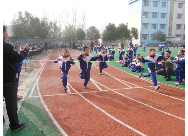 曾都区洛阳小学在崭新的塑胶操场上举行运动会