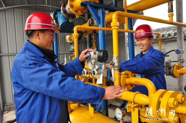 随县正泰天然气公司安全生产常抓不懈,安全送气服务客户。图为生产技术工人正在精心调试设备。(本网记者 孙洪涛 通讯员 龚承斌 郭勇强摄)