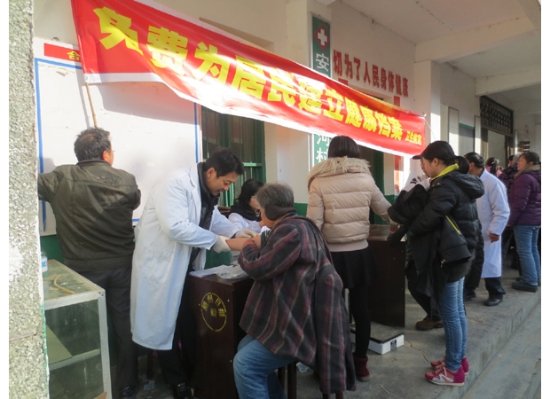近期,随县安居镇卫生院组织医护人员深入村组,在全镇24个村(居委会)设置体检中心,免费为参加新农合的群众体检,包括B超及心电图、健康咨询等多项医学检查。一个月来,共免费体检农民3万余人次,受到群众好评。图为安居镇漂河村体检现场。 (记者 陈德友 通讯员 范地明 摄)