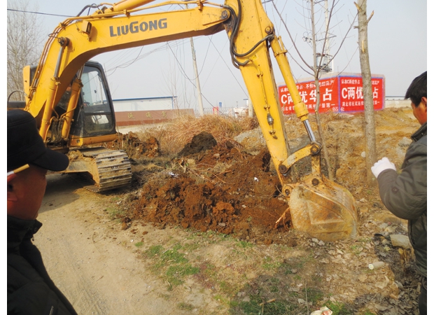 连日来,随县安居镇组织力量开展冬闲植树活动。图为该镇利用机械挖树窝以提高植树效率。 (记者 陈德友 通讯员 范地明摄)