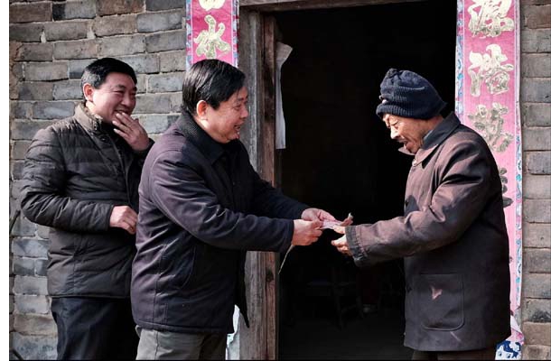 2月6日,市工商银行三万活动驻村工作组向随县三里岗镇马家畈村送去2万元慰问金,慰问困难群众和老党员。(记者 李文军 通讯员谢强 摄)