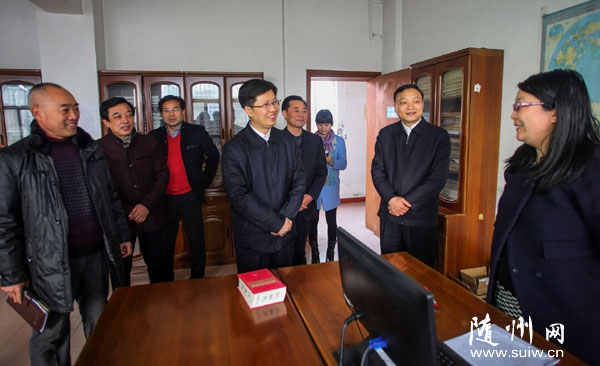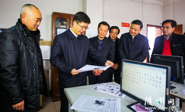 郄英才一行首先来到随州电视台播出机房和制作部等地,察看了播出设备,慰问工作人员,向大家拜早年。他说,随州电视台走过了不平凡的30年,通过自身努力,播出条件得到极大改善,节目质量大幅提升。新的一年里,希望随州电视台继续践行群众路线,推出更多贴近生活、贴近群众的精品力作,宣传核心价值观、实时反映随州变化、解读惠民政策、发挥舆论监督作用,凝聚更多正能量,推进“圣地车都”建设。