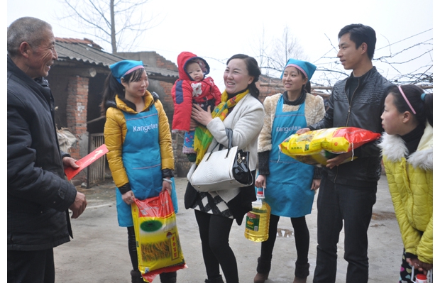 市政协委员、民建随州市委会员、康洁洗衣公司总经理李慧春节前来到随县安居镇为贫困户送温暖。(记者 陈德友 通讯员 李 旭摄)