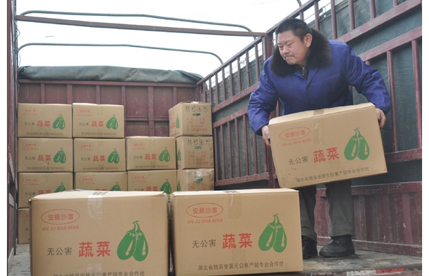 随县安居镇王家湾村蔬菜种植基地装箱调运新鲜蔬菜