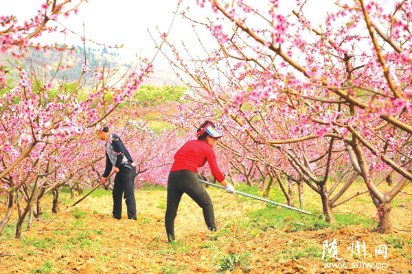 近日天气晴好,随县唐县镇果农抓紧时机给果树除草松土。(记者 徐斌 摄)