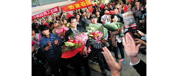 这104人都是中建国际装备有限公司的职工,经过数天奔波和11个小时的长途飞行,终于回到中国。