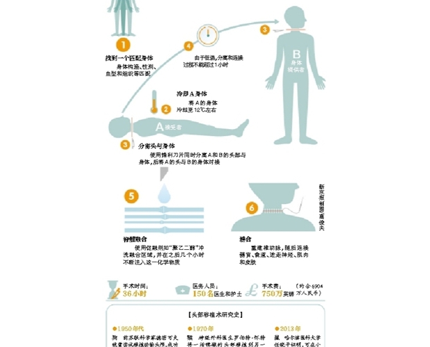 今年2月,他在《国际外科神经学》期刊刊登了一篇综述目前脑移植技术的文章,称现在技术已可以实现“换头”。他对媒体表示,将在今年6月美国马里兰举行的美国神经和矫形外科医师学会年会上展示自己的项目。