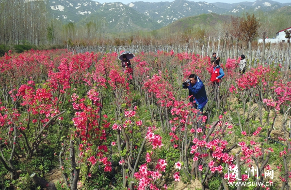 随州网讯    随县七尖峰野生杜鹃日前竞相开放,引得众多游客赏花。(记者 孙洪涛摄)