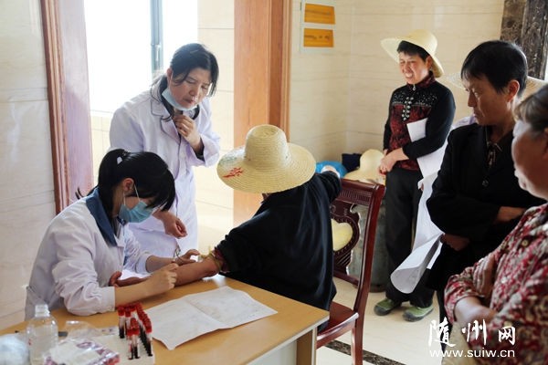 随州网讯 随州市铁树医院、湖北丰年公司日前进行关爱农民工活动,免费为农民工体检,并建立健康档案。(记者 孙洪涛摄)