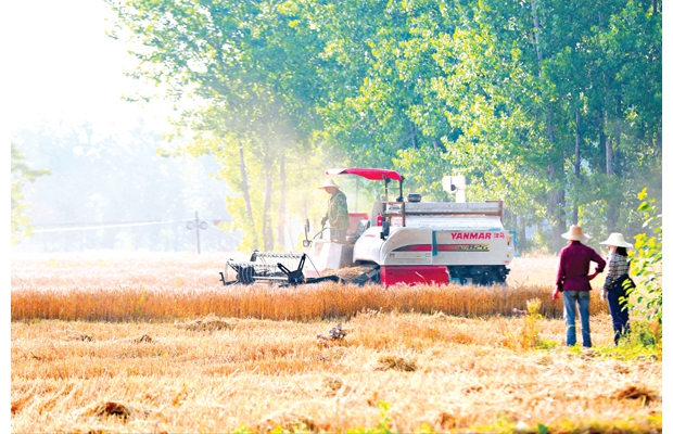 随州网讯 去冬以来,我市风调雨顺,夏粮普遍丰收。图为5月20日随州市随县均川镇墙院村农民正在收割小麦。(记者 李文军摄)