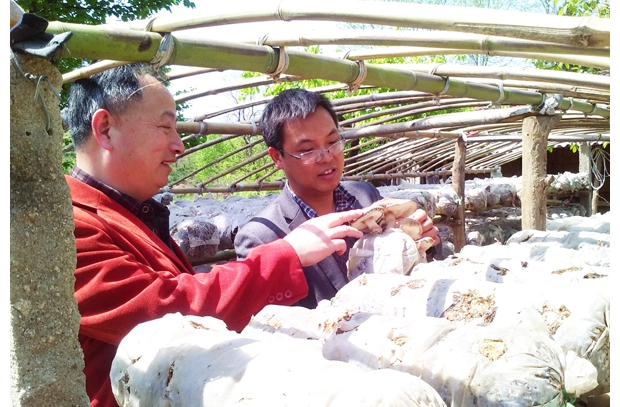 随州网讯 近年来,随州市随县扶贫办采取帮资金、帮技术、送信息等方式,加大对贫困村帮扶力度,收到较好成效。图为县扶贫办干部在草店镇檀山村了解菇农育菇情况。 (记者 金 鸣摄)