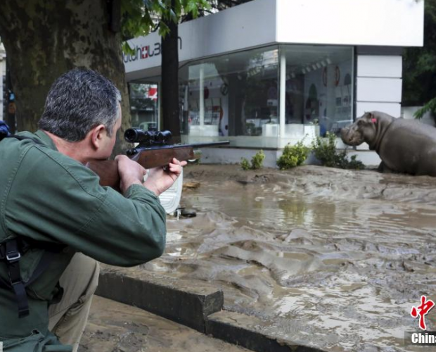 格鲁吉亚遭洪灾袭击 河马逃上街
