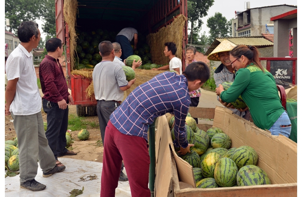 随州网讯 随州高新区淅河镇积极推广高效农业生产模式,该镇今年大田套种的西瓜喜获丰收。 (记者 孙洪涛 通讯员 王 涛摄)